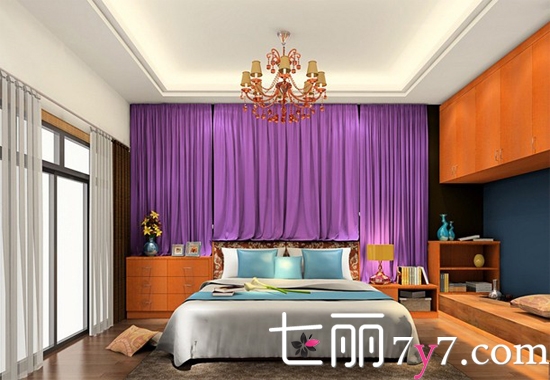 空间点评:床头紫色布幔点亮了整个空间,充满柔情似水的感觉,将凹位地台打造成榻榻米休闲区,大气而不张扬的收纳吊柜,收纳效果非常棒,使整个卧房集睡眠、收纳、休闲功能于一体。使整个卧室充满了对生活的享受感。热情不乏稳重,理性不失格调。