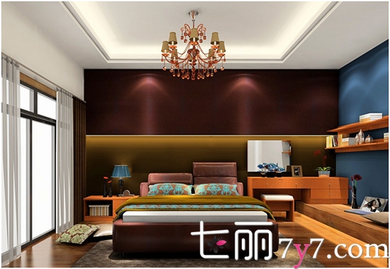 空间点评:加州梦一直是古典与现代结合的设计理念,将古典风范与个人的独特风格和现代精神结合起来。融入现代多功能设计,造型大胆抛开传统,充分展示个性。凹位的地台设计搭配吊柜层板被设置成主人专用的阅读、休闲区,皮质软床使整个空间显得非常舒适惬意。