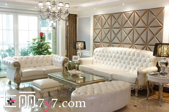 欧式田园的家居以冷色调为主,给人清新舒适的空气感,皮质沙发造型别致具有柔美线条。沙发客厅的装饰更具显示主人一种热爱田园生活的心境。