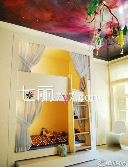 现在很多人家一生就生双胞胎,房间变得不够怎么办?不妨给小户型的儿童房装上上下铺设计,这样一来就不愁没有空间啦!还能融合进双胞胎的感情。