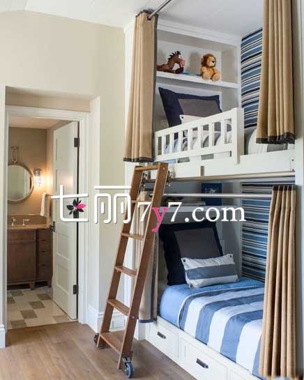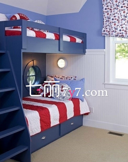 现在很多人家一生就生双胞胎,房间变得不够怎么办?不妨给小户型的儿童房装上上下铺设计,这样一来就不愁没有空间啦!还能融合进双胞胎的感情。
