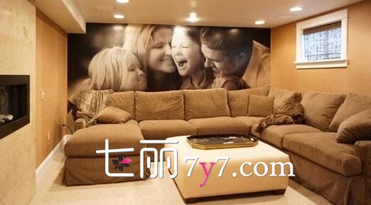 客厅除了是供给客人欣赏之外,也要让客人感觉到家的温馨,在背景墙上贴上一副一家三口的温馨合照,用放大到填满整个正面墙的程度会比悬挂着更有味道,而且让它成为客厅里的亮点就是如此简单哦。