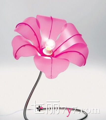 这款灯饰一定很受女性朋友的喜爱,落地灯被设计成一朵粉色的花,而且正在娇羞欲滴地绽放着,灯光亮起来时更加绚丽,使整个房间看起来很时尚温馨。