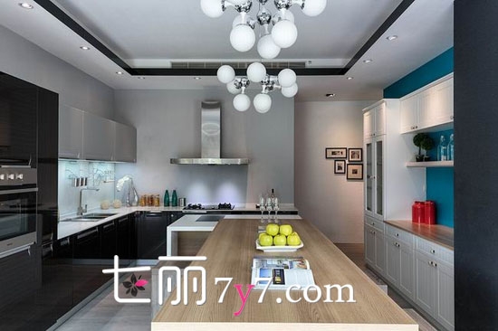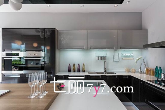 大理石的柜台,摆放玻璃杯或玻璃瓶之类的装饰品更加高端大气上档次,餐具都是银色调的,这样干净的厨房和干净的厨具,连吃饭都变成了一种艺术了。