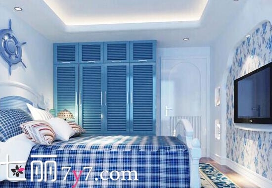 地中海风格卧室装修效果图 清新蓝调小窝倍感温馨