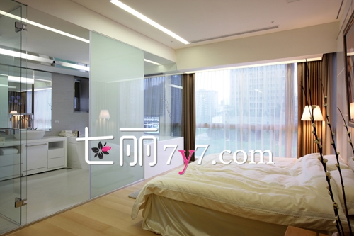 纱帘与玻璃让整个空间看上去更宽敞明亮,独特的卫浴设计便于生活起居。淡雅的空间用暖光灯来修饰,让空间不再“冰冷”。合理规划的空间感,仿佛被淡蓝色的薄水包围,有种身在大自然的小溪边,身心舒畅。