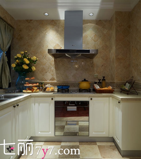 采用冷暖色调的搭配,墙面上渐变色彩看上去十分温和,白色橱柜带着优雅气息。在任何一个角落,都能体会到主人悠然自得的生活和阳光般明媚的心情。唯美浪漫的厨房仿佛自身在大自然。