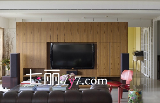 这种背景墙在装修中比较普遍,木质的感觉很有质感,给人温和的感觉,出挑的色彩视觉享受,在白色的基底里显现出来,整个家居的装修也很现代化。