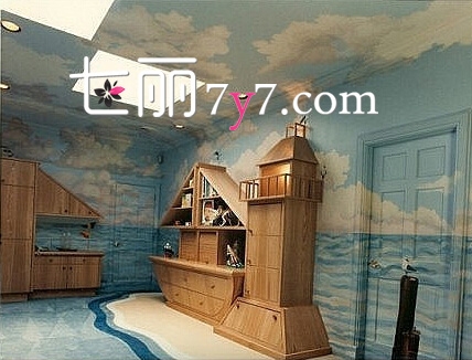 小的时候有没有一种想要长大出海当水手的梦,但是已经错过,没关系!给自己的宝宝来一个这样的环境,墙壁与地板刷成大海和蓝天,木质的“塔灯”引孩子往正确的方向前行,让家成为孩子的港湾。