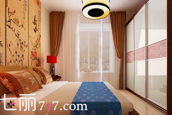 轻快简洁的设计,无论是色调上还是装饰上都很好的呈现中式风格的神韵。卧室背景墙为具有中国古典韵味的花鸟古画,庄重典雅又不乏浪漫温馨的感觉。看似简单朴质,实则韵味无穷。