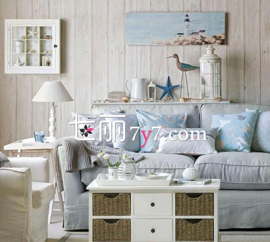 木质也是地中海风格不可或缺的一大元素。白色木质墙面带着朴质简约美。墙面上的挂画与小饰品都离不开海。桌面上一些海星饰品取材大自然,浓浓风情韵味,释放出海洋的味道。