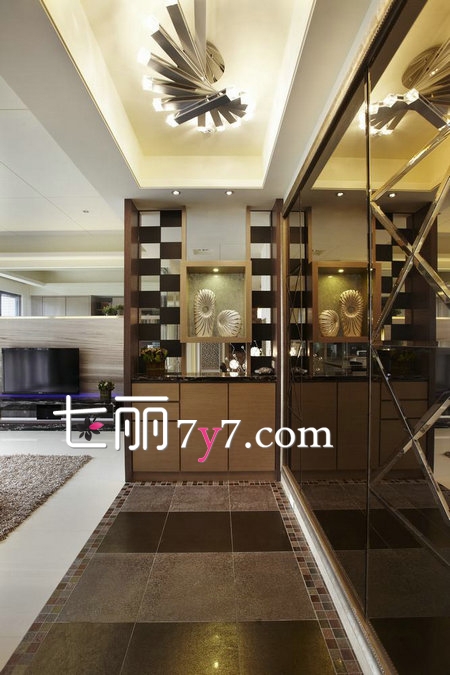 设计推荐:这个玄关设计与餐厅空间直接连接,算是解决掉了封闭式玄关的阴暗,狭窄的缺点。地面瓷砖的铺面,延伸出立体感。开发式的空间界限视觉效果相当好。柜子的布局非常的大气。