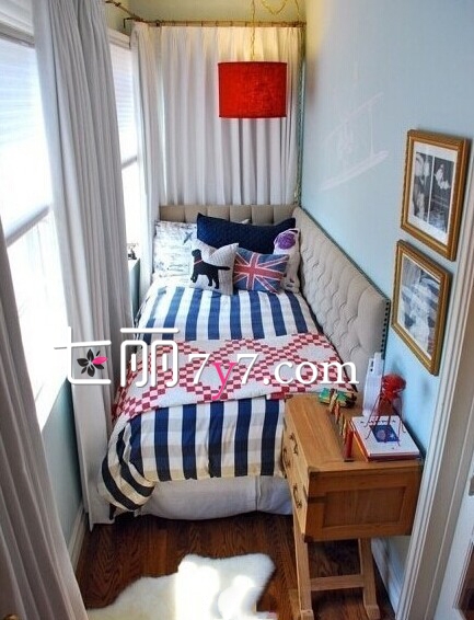 时尚点评:长方形的阳台可以改造成一个房间,一张床就能占据整个空间,只要换上好看的床单,这个空间就变得时尚靓丽起来,这样一来家里又多了一个可以睡觉休息的地方。采光好还能躺在这里看书呢!