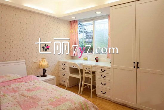 第一感觉给人简洁又温馨的气息。衣柜书桌合理规划,让空间看上去更大更明亮。欧式家居典雅浪漫,床头古典小台灯非常精致。小碎花壁纸为简单的白色家居更添温馨感。整体空间呈现出清新淡雅的小格调。