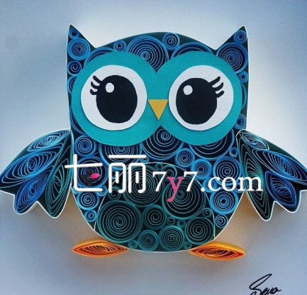 可爱的猫头鹰萌萌哒,每个人都有天真的童年,在童年里,可以想象鱼在地上走,人在水里游的天马行空,而蓝色的猫头鹰就代表着人们的童年,不能实现却永久美好。