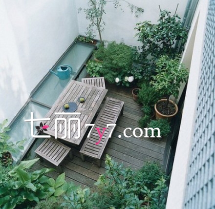 参考:家的后空地稍微改造一下,也能成为完美的庭院,木质的地方配上木质的桌椅,挨墙壁的地方装上玻璃的地板,给出一种空间感,周围种上各种花盆,给人心旷神怡的感觉。