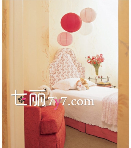 设计欣赏:纯净的儿童世界,有没有发现床角的布娃娃呢?狗的娃娃特别的温馨有没有,棕色的短绒毛地毯,还有水红色的沙发,白色的公主床,即使小空间也能完美打造出好看的样子,这里就是儿童纯真的世界,很向往吧。