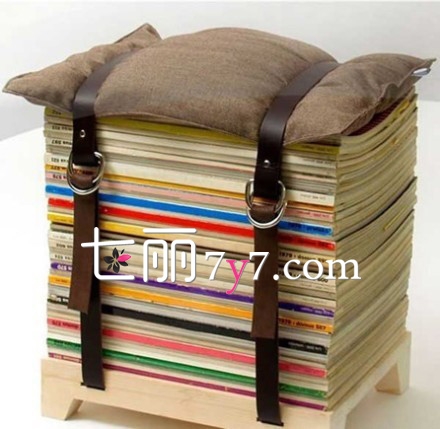 皮带还可以弄成小板凳,弄一块木板,然后把一些废弃的书,用皮带捆版好,然后在书面上放一个小枕头,就成了一个小板凳了。既有收纳作用,还能坐坐,实用又个性。