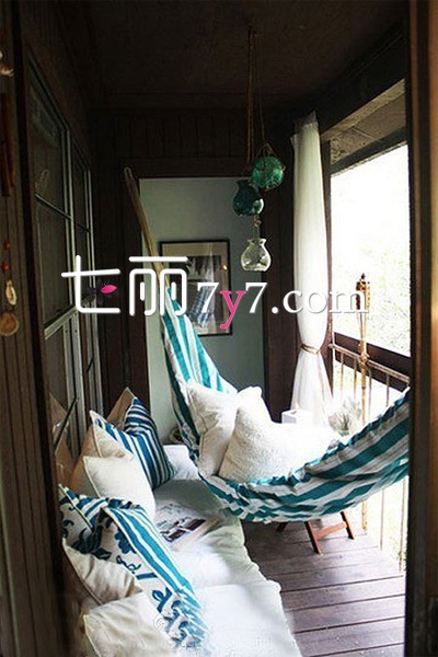 这款阳台设计专为懒人设计,秉承着能做绝不站,能躺绝不做的设计理念。柔软的沙发和温暖的吊床,承载了满满的温馨感,让人忍不住想马上躺上去。在假期,把它当做家中最最舒适的休息胜地,也是美醉了。