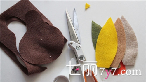 STEP 1:用剪刀剪下你要的形状,一个火鸡身体,六片彩色羽毛,以及一个三角形嘴巴。