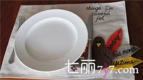 STEP 2:感恩节,感恩一些人或者事是节日的必经过程。可以用黑色织物涂料笔在上面写上重要日期、时间或者人名以表示感谢,跟客人在一起吃饭时也有话题可说呢。