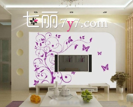 白色的背景墙是现在很多人首选的一款,那么单调的白色要怎么才能修饰的更加漂亮呢?可以选一些比较柔美一点的壁纸,比如线条流利的树,或者藤条,还或者带着大范围的蝴蝶花等。