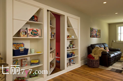 室内隐形门是一种没有门框,不需要锁和把手的门,常给人无门的错觉。作用是营造死人空间,装饰效果还有空间分隔的效果,下面介绍几种隐形门的设计。