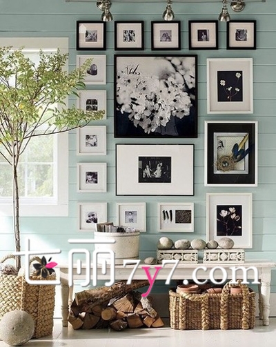 将纯白无暇的墙面挂上多个画作,搭配纯白色的实木桌,周围摆放的都是一些草编物品,以及假树枝,而这些不管是浪漫、温情的、还是清新、宁静的,都能让人感觉到屋主精心布置照片墙的心思,以及对于生活的无限热爱。