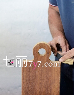 diy步骤八:将砧板上面的四条边打磨掉,防止在日后的使用中被割伤。最后一款超个性的手工砧板就搞定了,根据自己的喜爱,亲手打造出让人心动的厨具用品,看了以后,不知道你那颗骚动的心有没有被调动起来了,心动不如行动,赶紧动手DIY吧!