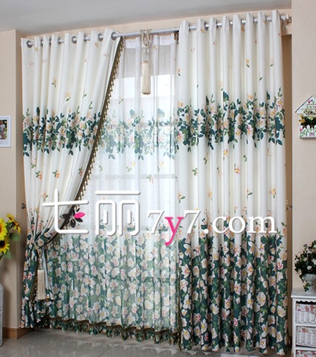 固定皱褶花型好看且不变形,红花在绿叶的衬托下令人赏心悦目,色泽艳丽,银丝印花纱帘,手感垂顺,非常精致,整体营造出非常唯美温馨的家居环境,让人看着都沉醉不已。