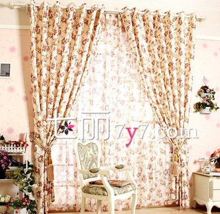 早春田园风布艺窗帘图片 缤纷花朵百搭家具更温馨