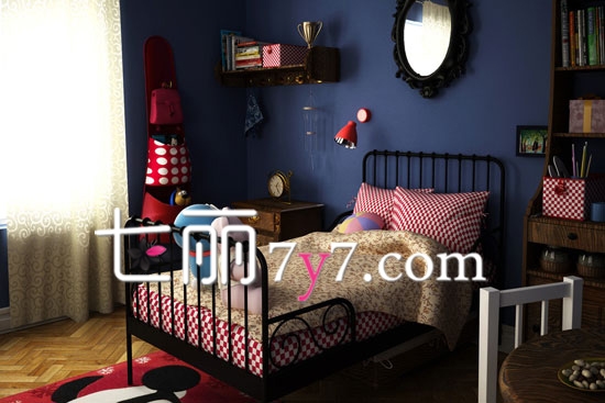 儿童房设计欣赏:以蓝色为主的儿童房,一眼望去就知道非常适合小男孩,简约的美式风格,又偏向于浓厚的田园风,整体营造出温馨浪漫的色彩,增添了更多家的温馨味道。