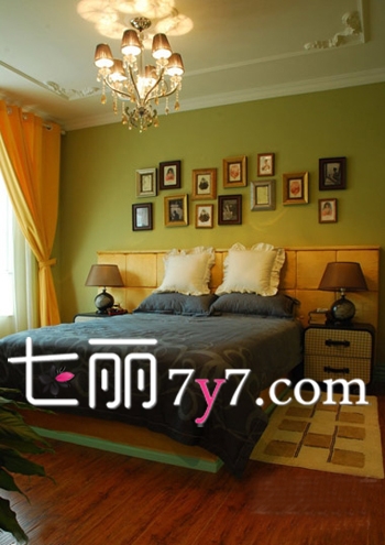 不同于一般私人卧室的柔美展现,此款卧室个性化的软装设定,床头融入时尚照片墙的设计,显得非常时尚精致,而吊顶的欧式水晶灯,浓浓的奢华风情尽显,所有的饰物都彰显入住者的自信与品味。