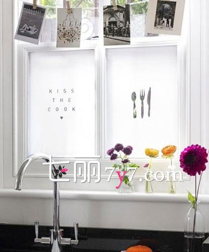 过于简单的厨房,那么做出再好吃的食物,也会变得无味。所以在窗台摆放上晶莹、靓丽的玻璃插花,剩下的部分则可以自己DIY完成。哪怕是一些风景图片,串联起来挂于窗中央,让聪慧的小心思巧妙的美化了暗淡的窗户。