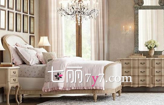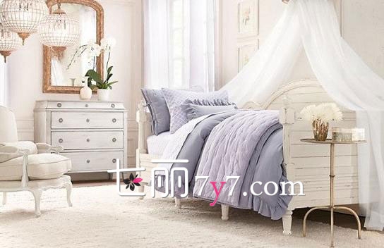 帷幔也是公主房卧室的重点之一,特别是在选择一张带有帷幔的公主床,突出欧式风的古典和韵味,也增加了女生的私密性。加上床体设计比较高,增加了空间的灵动性以及轻巧感。床头的水晶吊灯,又增添了空间的品质。