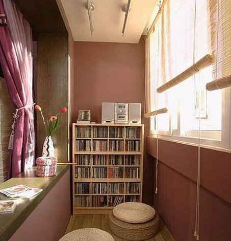 改成一个小小书籍阅读区,摆上两张舒适的坐垫,几盆令人感到舒心的植物,在舒适的春日午后,安静的空间,捧上一本书,喝着一杯舒适的绿茶,在知识的海洋里徜徉,不失为惬意的享受。