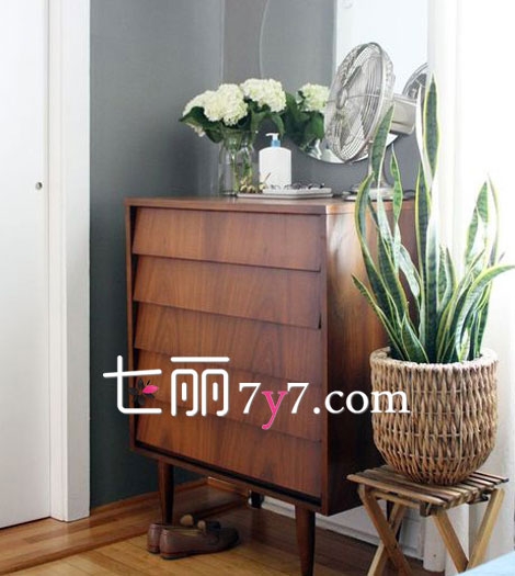 很多家庭的玄关在入门时都会一侧是凹陷的,例如是鸡肋的空间,在这里与其放过普通的鞋柜,倒不如精心设计一个具有艺术效果的鞋柜,再加上一盆小绿植,清新优雅又好看,整个看去都赏心悦目的。