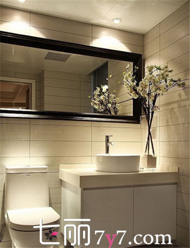 浅色系的卫浴间可以尝试着放置一些颜色和谐的花或是盆景。这样的卫浴间更加清新纯净,一扫脏乱差的印象。如果家中的卫生间都这样美美的,那有什么理由不相信主人是个热爱生活的人呢。