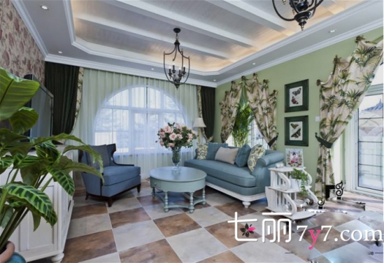 清晰绿色点燃整个客厅的生气,整个装修具有清新亮丽的气息,温暖的色调是客厅具有活力与温馨的感觉,这样的欧式风格很是现代化。