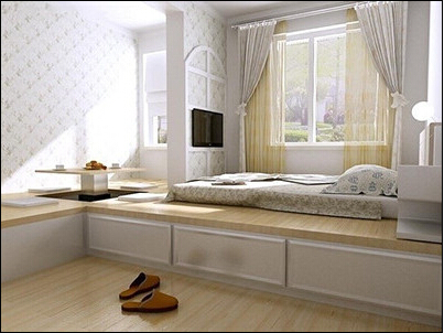 很多人为了方便,喜欢把地台设计成箱体,顺便再增添几个收纳的空间。实际上,地台做成实体的会更加好。如果做成箱体,地面上的龙骨间隔会过大,不稳固。经常往箱体里防止东西,也容易磨损草席的面,减少它的使用寿命。