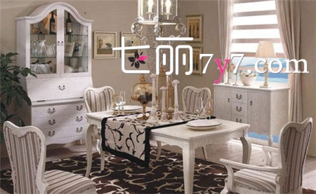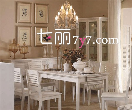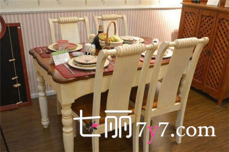 使用进口的水曲柳实木框架,实木桌角,仿古白的色调,让餐厅显得大方、自然和协调,丝毫没有矫揉造作的感觉。