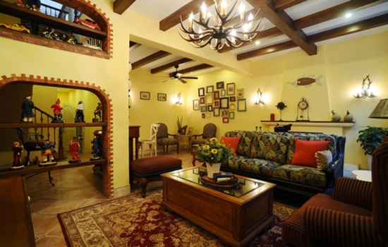 随处可见的花卉和绿色植物、雕刻精细的家具……所有的一切从整体上营造出一种田园之气。任何一个角落,都能体会到主人悠然自得的生活和阳光般明媚的心情。