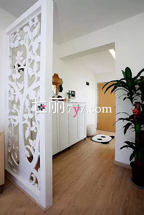玄关客厅的隔断很好的节省了空间,将美观,实用,价格完美进行结合,隔而不断的设计,在风水学上,具有阻挡穿堂煞、引光通风及流畅动线等多样机能。