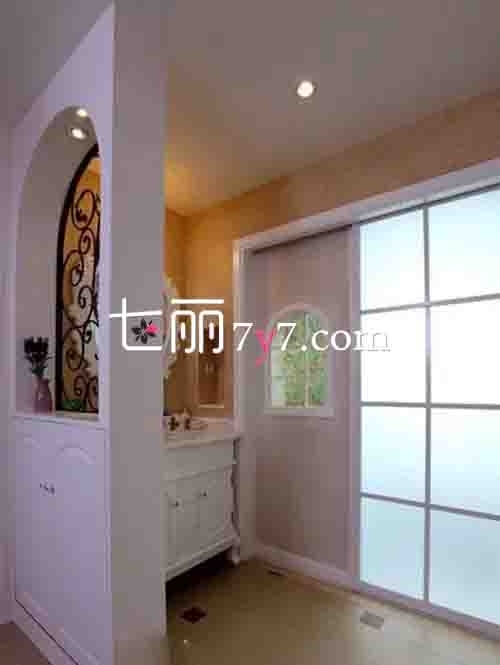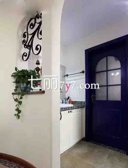 地中海式隔断选择了挖空墙体+镂空铁雕,同时这面墙体可以做观赏性的弯曲设计,也可以走实用路线,嵌入收纳柜,用途很多。