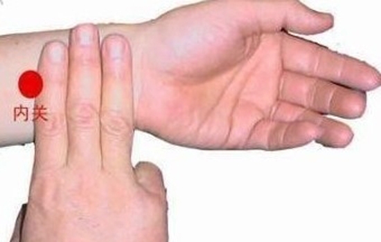 方法:拇指指端螺纹面轻轻按揉手臂的内关约1分钟。