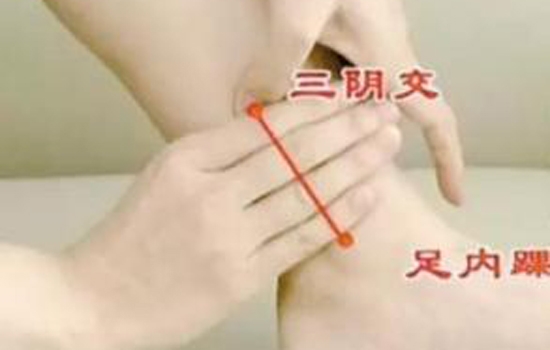 取穴:位于小腿内侧,内脚踝突出处上3寸,胫骨内侧缘后方,左右各一。