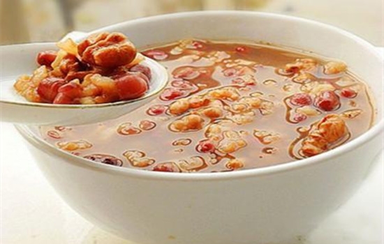 做法:大米、红小豆均泡发洗净,核桃仁洗净。锅置火上,倒入适量清水,放入大米、红小豆同煮至开花。加入核桃仁煮至粥浓稠时,调入白糖拌均即可。