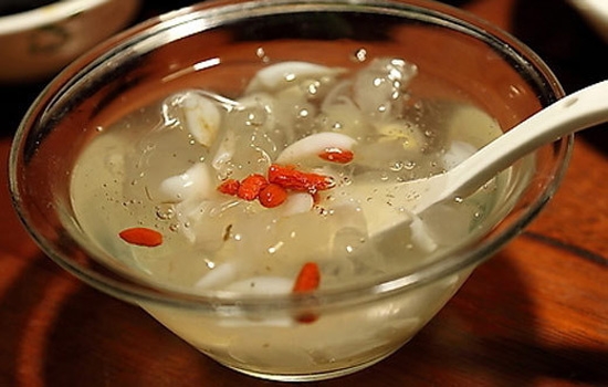 做法:取白木耳10克,清水泡发12小时,放入碗中,加冰糖20克、百合10克,将碗放入蒸锅中,隔水炖1小时,拌入蜂蜜,每日晨起空腹食用。
