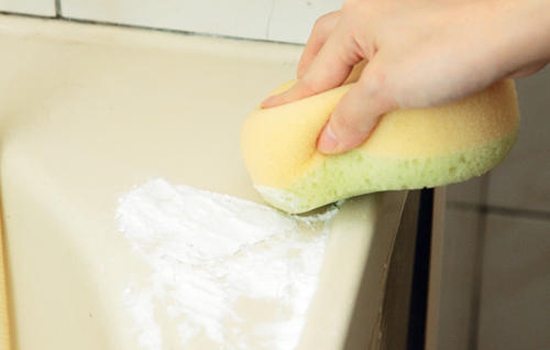 以微湿的手指或海绵沾取少许小苏打粉,用以擦拭沾有茶垢的部分,就可轻松去除茶垢,效果绝对比任何方法或清洁剂都来得快速,而且完全不会刮伤杯子茶具又省水。