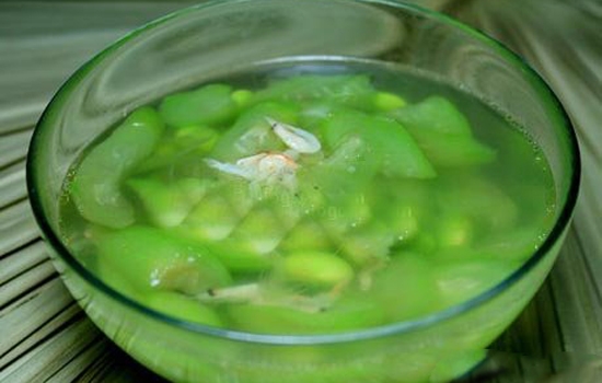 1、丝瓜1条,煮汤调味佐餐。